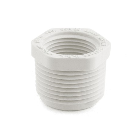 This schedule 40 bushing adapts 3/4" threaded PVC pipe inside a 1" theraded PVC fitting. MIP (male threaded) x FIP (female threaded) connections.
