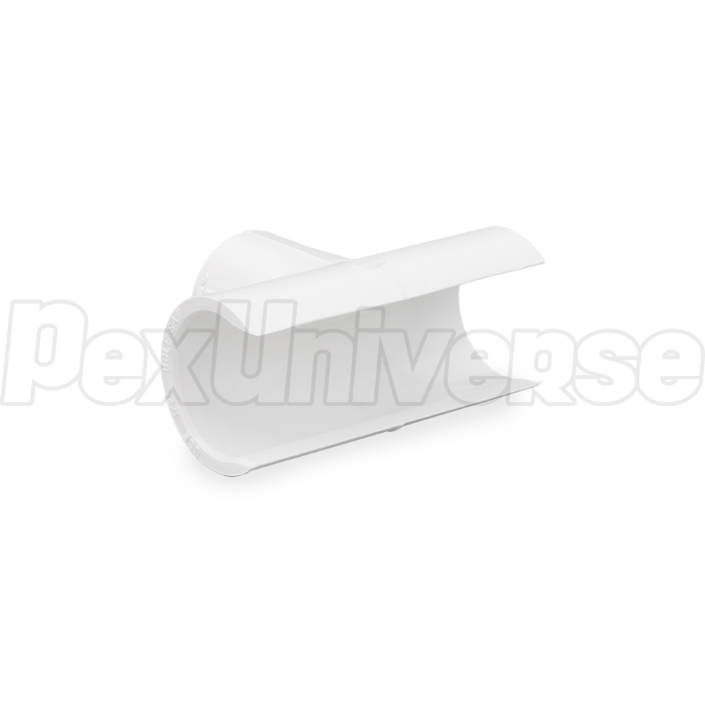 Snap-on, hot-tap pipe saddle (saddle tee) for 3/4" PVC pipe with a 1/2" Socket outlet. Snaps over the pipe for easy position adjustment without the need for extra support. Uses PVC cement + primer to secure over the pipe.