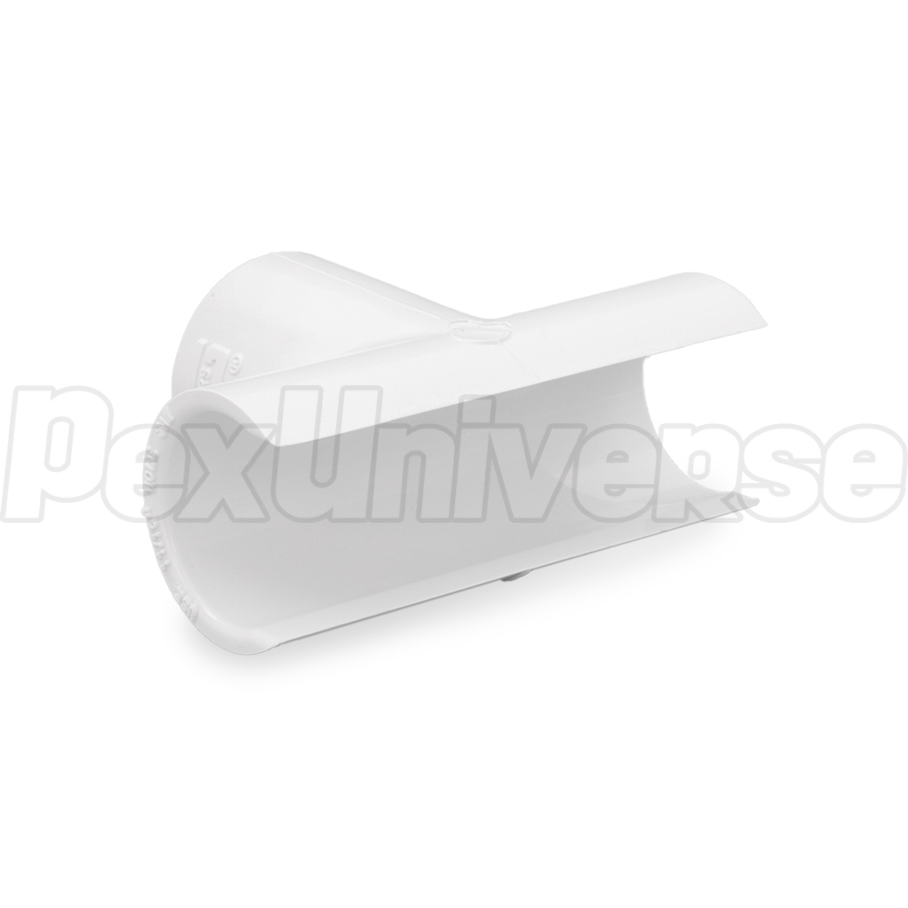 Snap-on, hot-tap pipe saddle (saddle tee) for 3/4" PVC pipe with a 3/4" FIP (female NPT threaded) inlet/outlet. Snaps over the pipe for easy position adjustment without the need for extra support. Uses PVC cement + primer to secure over the pipe.