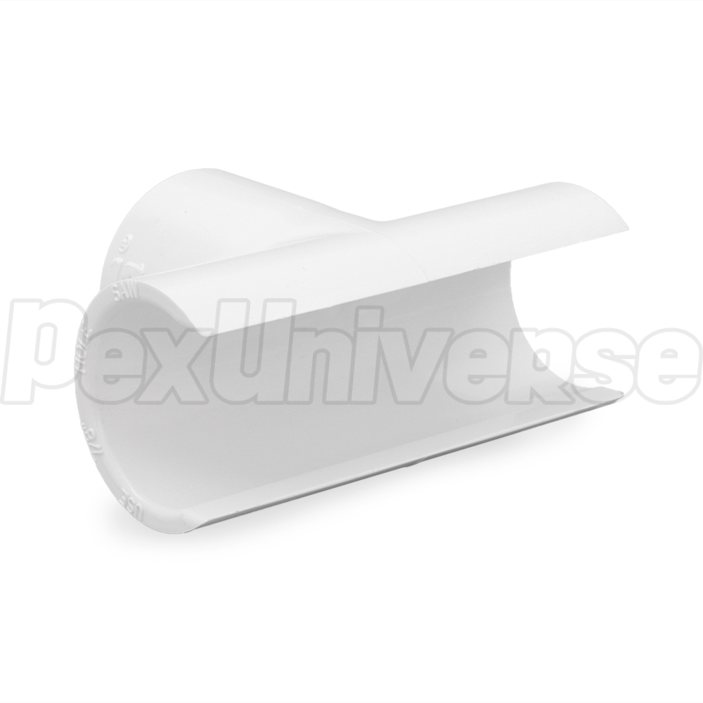 Snap-on, hot-tap pipe saddle (saddle tee) for 1" PVC pipe with a 1" FIP (female NPT threaded) inlet/outlet. Snaps over the pipe for easy position adjustment without the need for extra support. Uses PVC cement + primer to secure over the pipe.