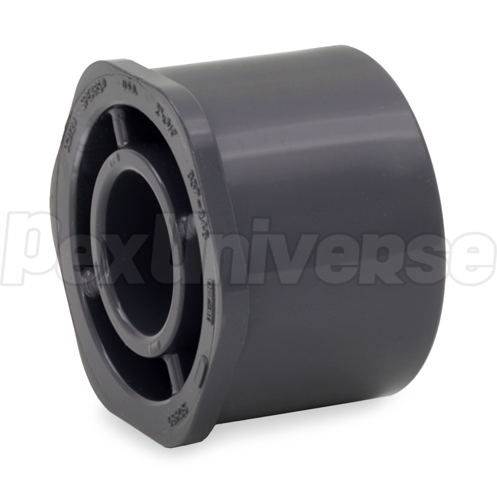 This Schedule 80 PVC reducer bushing adapts 3/4" PVC pipe inside a 2" PVC fitting or outlet. Spigot x Socket connections.