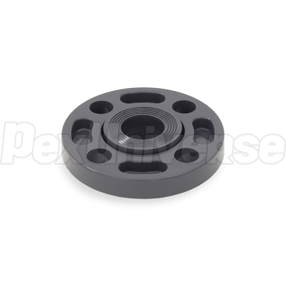 Class 150, Schedule 80 PVC Van Stone (swivel) flange with 1" Socket connection (for 1" Sch 80 PVC pipe) - for use with standard flanged valves, fittings, etc. Compatible with GK1 (Buna-N/NBR), GK2 (EPDM) and GK3 (Viton/FKM) series flange gaskets.