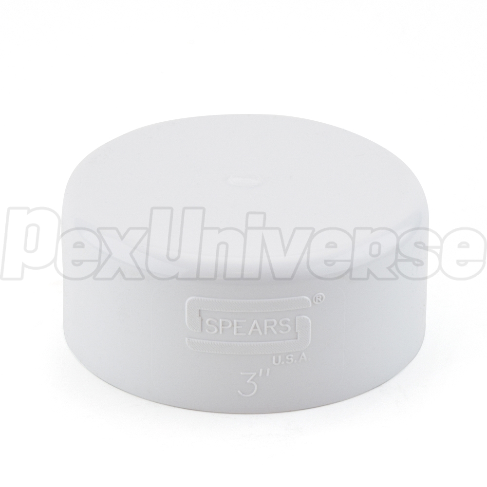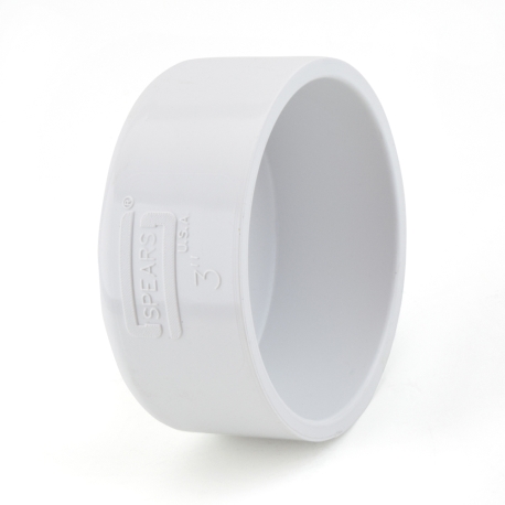 This cap fitting is used to terminate the end of a 3" PVC pipe either temporary or permanently.