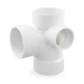 This fitting is a 3" sanitary tee (3" x 3" x 3") with additional 2" inlet on the right side. Hub (socket) conections on all outlets.
