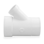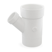 This reducing PVC street wye fitting has 4" bottom (spigot) x 4" top (hub/socket) x 2" side outlet (hub/socket) connections.