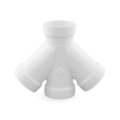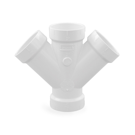 Double wye PVC fitting with (4) equal 2" hub (socket) connections.