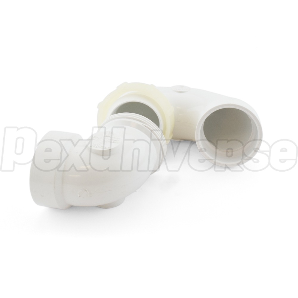P-trap with 1-1/2" PVC hub (socket) connections. Plastic nut allows to adjust the P-trap to accommodate the installation.