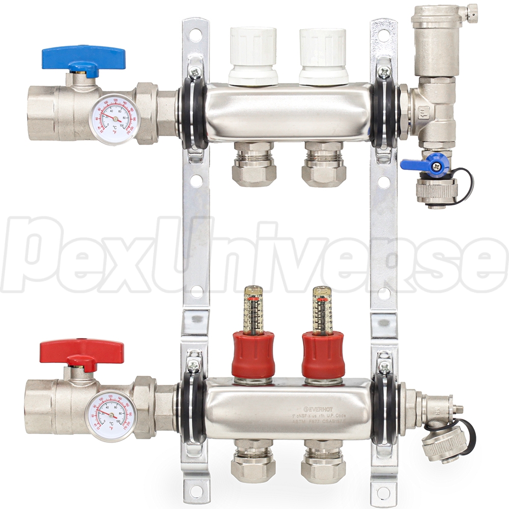 2-branch, Premium Radiant Heat Manifold Set with 1/2" PEX adapters (Supply and Return pair).