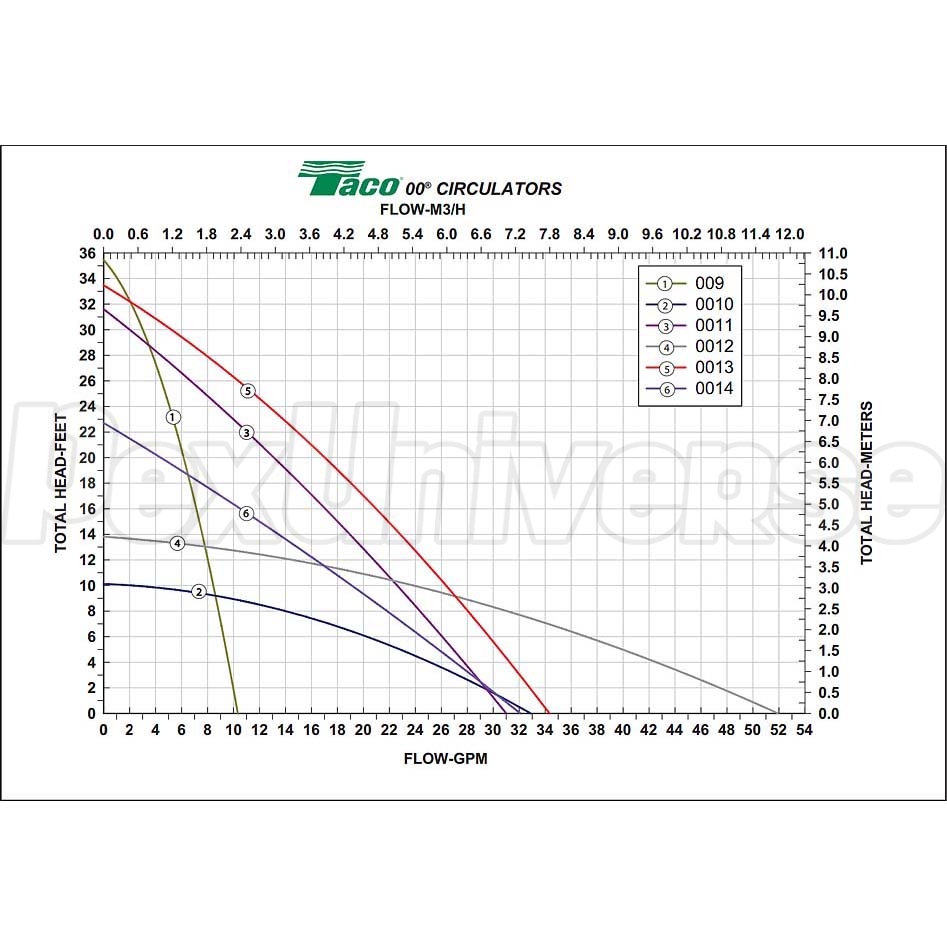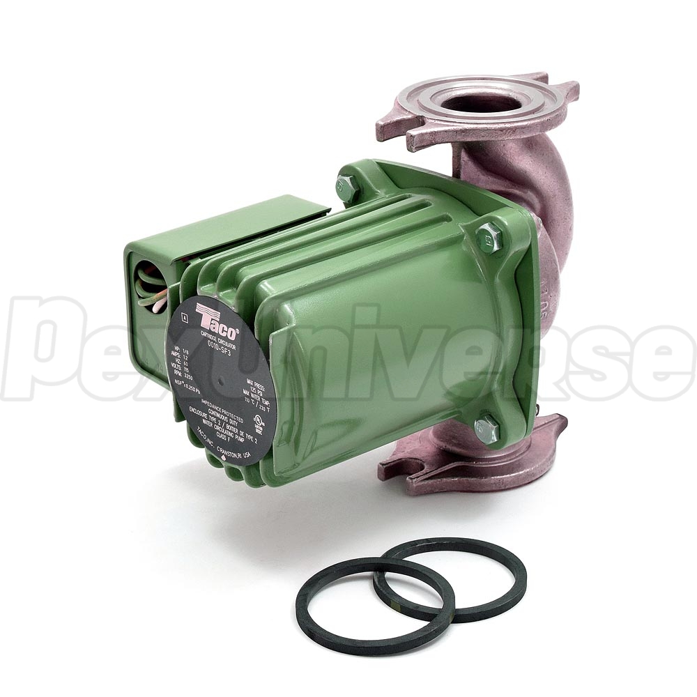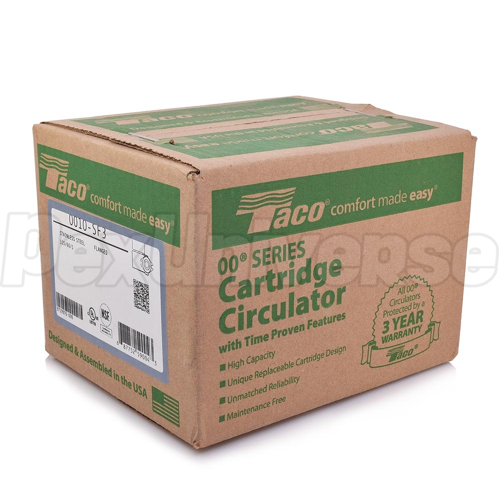 Taco 0010-SF3 Stainless Steel Circulator Pump is designed for a wide range of large residential and light commercial applications with medium head/higher flow requirements. Common uses include hydronic heating, radiant floor heating, indirect water heaters, chilled water cooling, and domestic hot water systems. Stainless Steel Taco 0010-SF3 Circulator Pump is also perfect for all open-loop, fresh water systems. Features a unique replaceable cartridge which allows for easy replacement, instead of replacing the entire circulator. Taco 0010-SF3 Circulator pump is compact, direct-drive, features low power consumption and is ideal or high-efficiency jobs.
