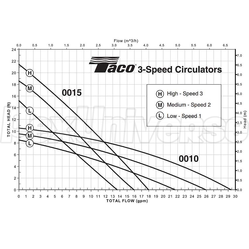 Taco 0015-MSF3-IFC is a 3-Speed Circulator Pump and is designed for a wide range of applications in hydronic, radiant heating and other recirculation project types.