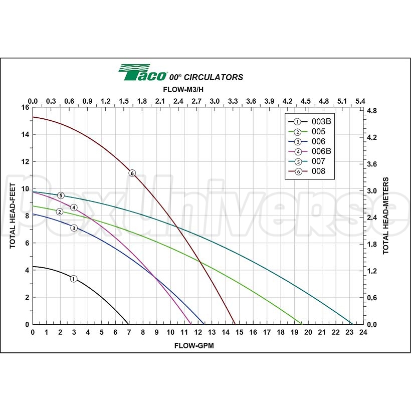 Taco 005-SF2 Stainless Steel circulator pump is designed for a wide range of residential and light commercial water circulating applications. Its unique replaceable cartridge contains all of the moving parts and allows for easy service, instead of replacing the entire circulator. Compact, direct-drive, low power consumption design of the Taco 005-SF2 pump is ideal for high-efficiency jobs.