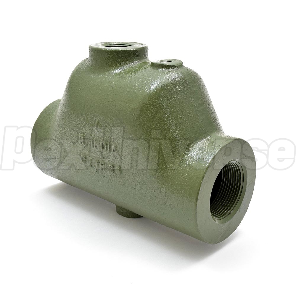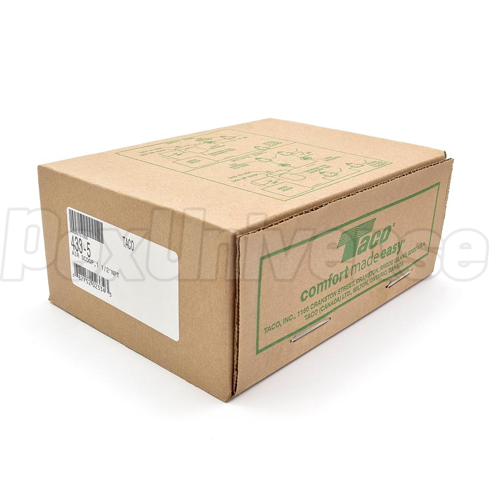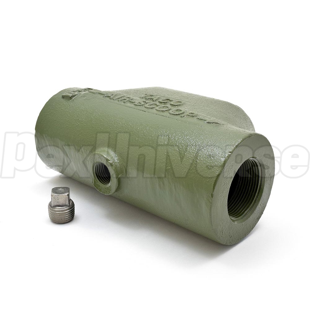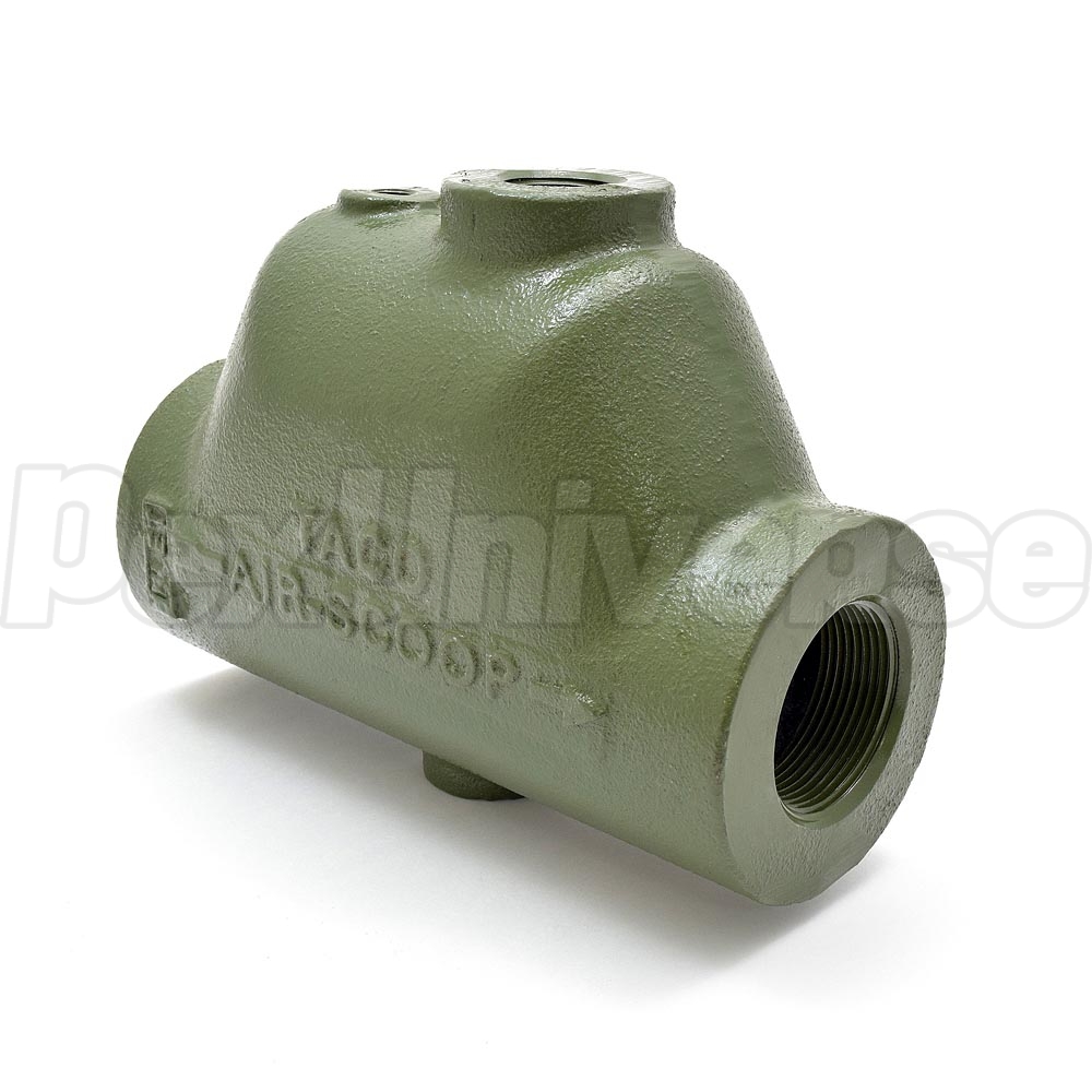 Taco Air Scoop is designed to slow the water velocity to separate the air from solution. The unit is manufactured from cast iron and features equal threaded inlets on both sides. Top of the air scoop features a 1/8" NPT outlet (for connection of a regular air vent such as Taco 400-4) and an additional 3/4" FNPT outlet for the exoansion tank. Bottom of the air scoop has a 1/2" NPT threaded outlet, which also allows to connect a plain steel diaphragm expansion tank.