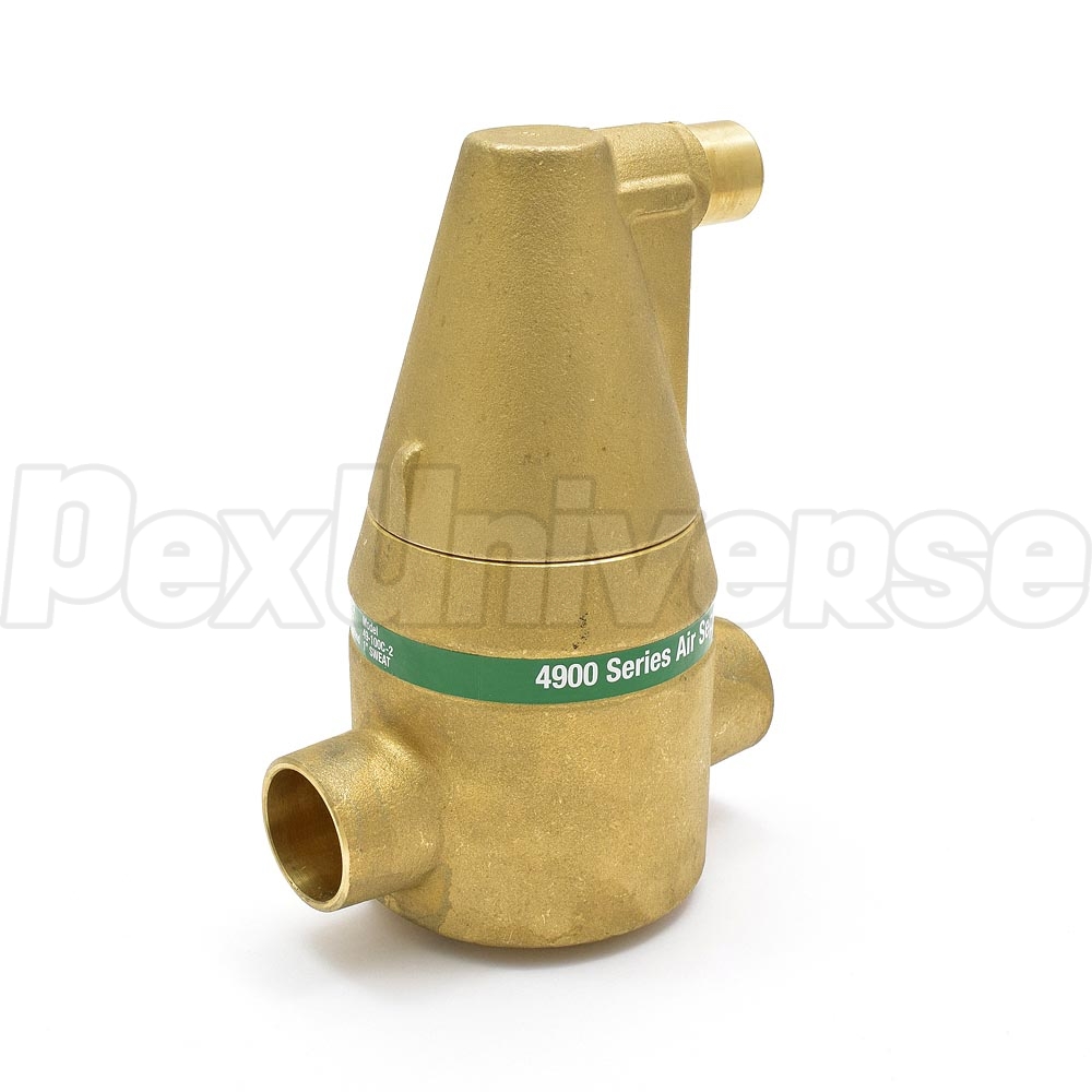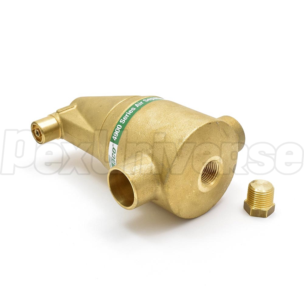 Taco 4900 Series Air Separator model 49-100C features 1" sweat inlets and is designed for air removal from hydronic, radiant heating and cooling systems with maximum temperatures of 240F and maximum operating pressure of 150 psi. 1/2" threaded tapping at the bottom of the air separator allows for easy connection of an expansion tank.