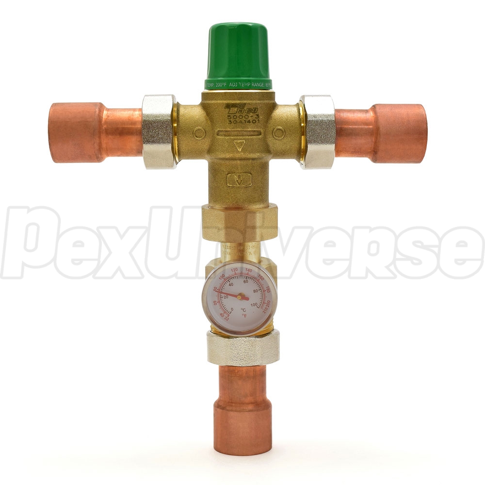 1" Union Sweat Mixing Valve w/ Temperature Gauge (Lead-Free), 85-175F