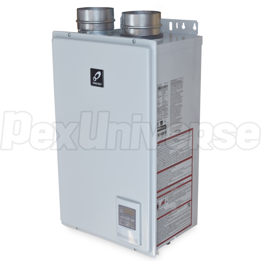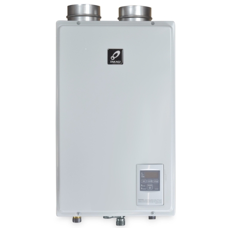 Takagi T-H3M-DV-P model is a high-efficiency condensing indoor propane gas tankless water heater, intended for small residential applications.