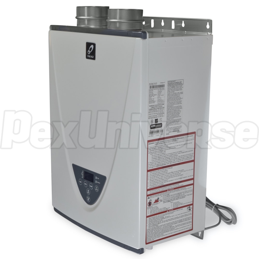 Takagi TK-540P-NIH model is a model is a high-efficiency condensing indoor natural gas tankless water heater with a built-in hot water recirculation pump (for systems with a dedicated hot water return line). Intended for medium to large residential applications.