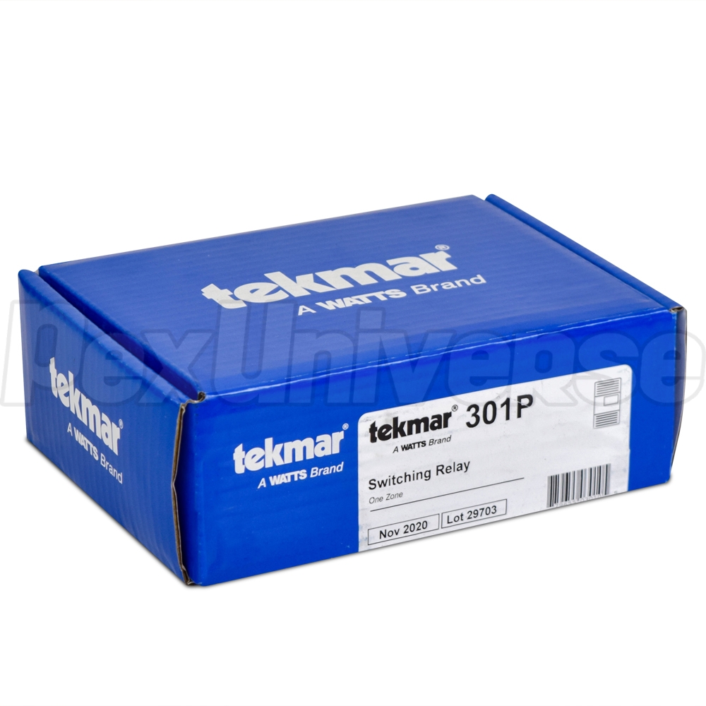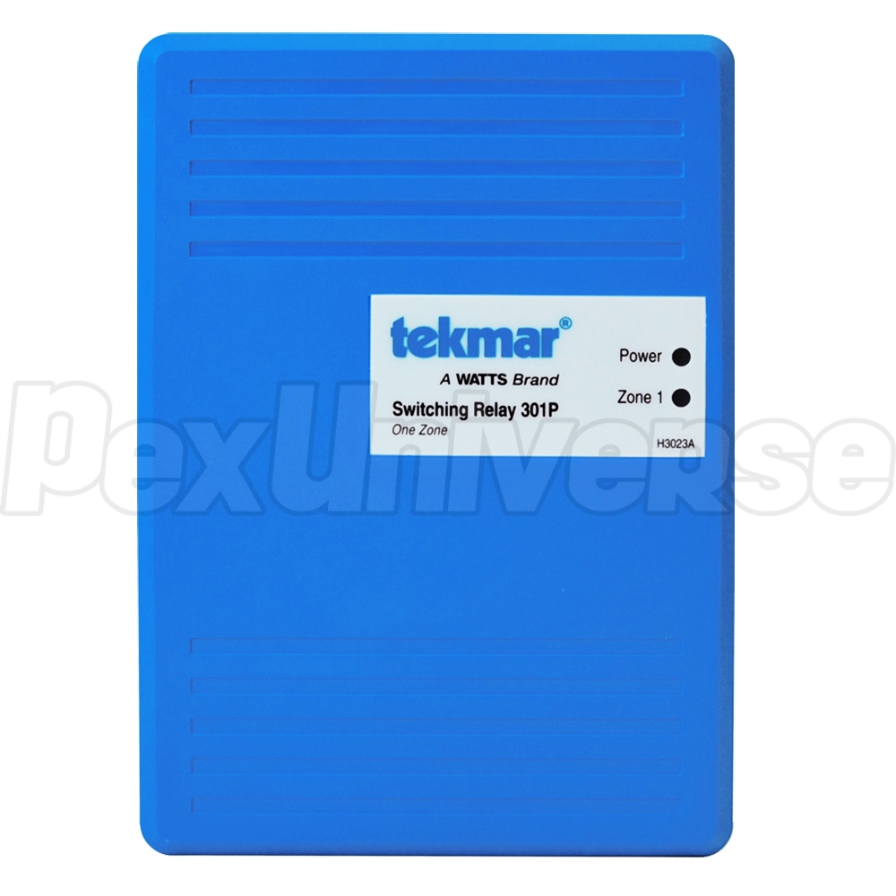 Tekmar 301P 1-Zone Switching Relay connects to any brand of low-voltage (24V) thermostat and operates a circulating pump and a boiler, providing heating to a hydronic heating system. Universally compatible with all thermostat and circulator brands.