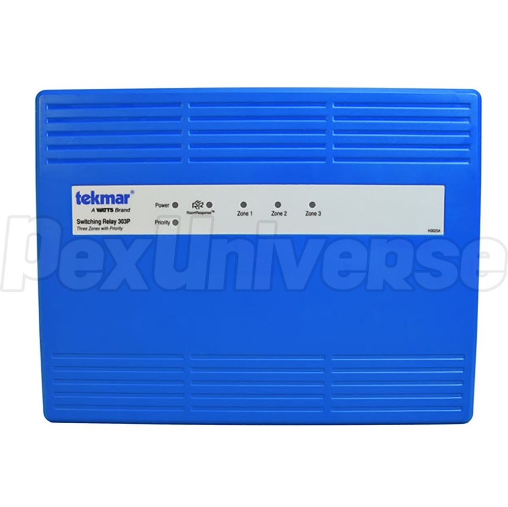 Tekmar 303P 3-Zone Switching Relay connects up to (3) low-voltage (24V) thermostats and (3) circulating pumps, providing heating to zoned hydronic and radiant floor heating systems. There is an optional priority of Zone 1 over the Zones 2 and 3. Zone 1 can also be used to provide heat to an indirect hot water tank. Compatible with all thermostat and circulator brands.
