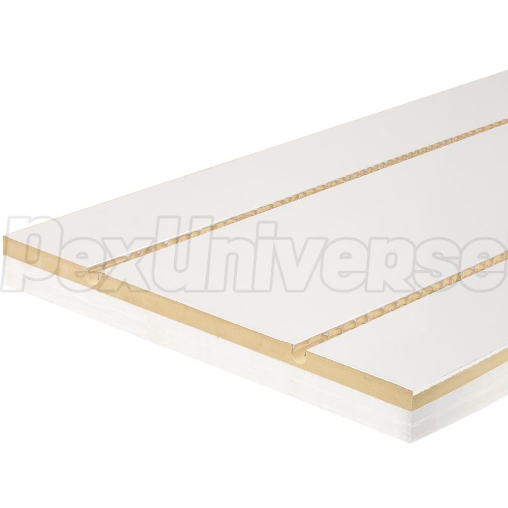 ThermalBoard EPS is a radiant heat panel designed for "sandwich" type floor heating applications, where PEX tubing is positioned between the subfloor (whether standard plywood on joists or a concrete slab) and the finished floor. Each board is 16" wide x 48" long and is comprised of a high-density 1" EPS insulating foam, MDF substrate (no VOCs, formaldehyde-free and MR30 moisture resistant) and a reflective aluminum top layer. This combination is ideal for all types of subfloors and provides not only a great R-Value of 5.2, but a basic acoustic barrier as well (very useful for homes with poor or no floor-to-floor insulation) - no need to purchase or install the foamboard panels separately. Moreover, ThermalBoard EPS been tested and proven to be both more thermally efficient and more affordable than similar options on the market. These radiant panels are ideally suited for retrofit projects where pouring a new slab for PEX or stapling the same between the joists is not possible or impractical. Single-family or multi-story, multi-family residential homes & apartment buildings are great examples. 1" EPS backing makes it possible to install ThermalBoard in basements as well. These panels are designed for use with 3/8" PEX, which is more flexible than standard 1/2" size used in radiant floor heat projects and can be spaced at only 8" apart (standard PEX spacing in ThermalBoard) - allowing for a more even heat distribution and fewer cold spots. The panel comes in only (2) options - straight and return (U-turn) combi, which makes design and installation a breeze comparing to other brands. ThermalBoard can be adhered to the subfloor using readily-available construction adhesive and screws (or cross-stapled - see manual for details).