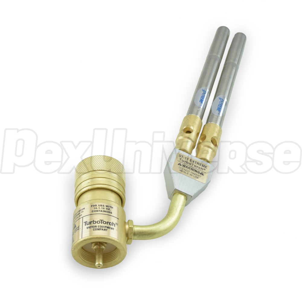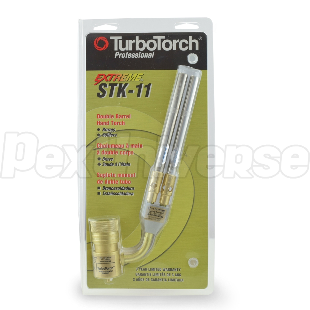 STK-11 torch includes: STK-R pressure regulator, ST-11 dual barrel tip and instruction manual. This model is a modification of STK-9 torch with double the flame output, designed specifically for use or larger pipe sizes.