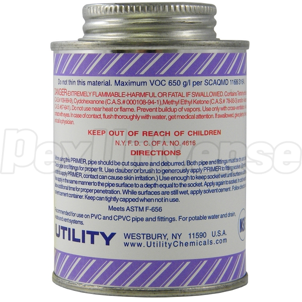 Clear primer - cleans and preps PVC and CPVC pipe and fittings. Suitable for potable water and DWV (drain, waste, vent) systems.