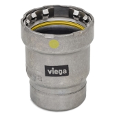 Viega MegaPressG series, gas press cap fitting terminates (caps off) the end of a standard 1-1/2" black steel gas pipe.