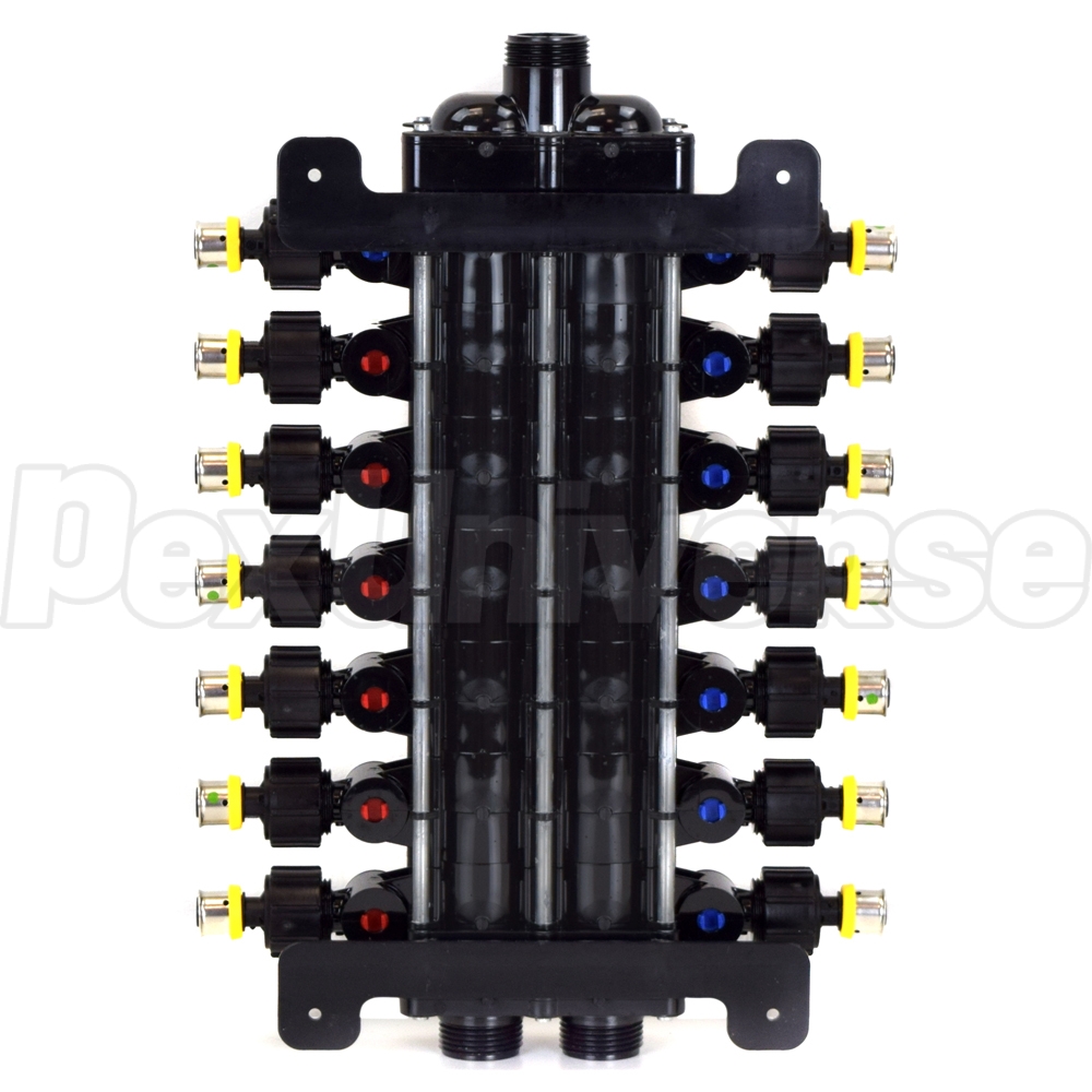 14-Port, 1/2" PEX Press ManaBloc Manifold, (6) Hot, (8) Cold