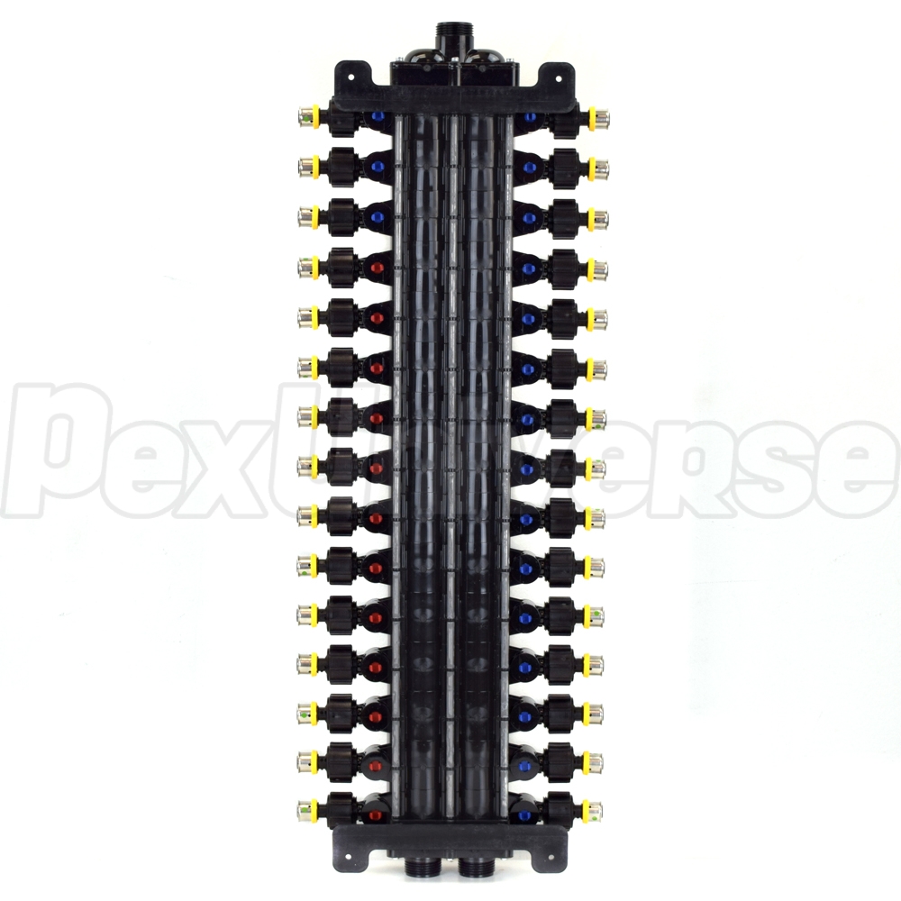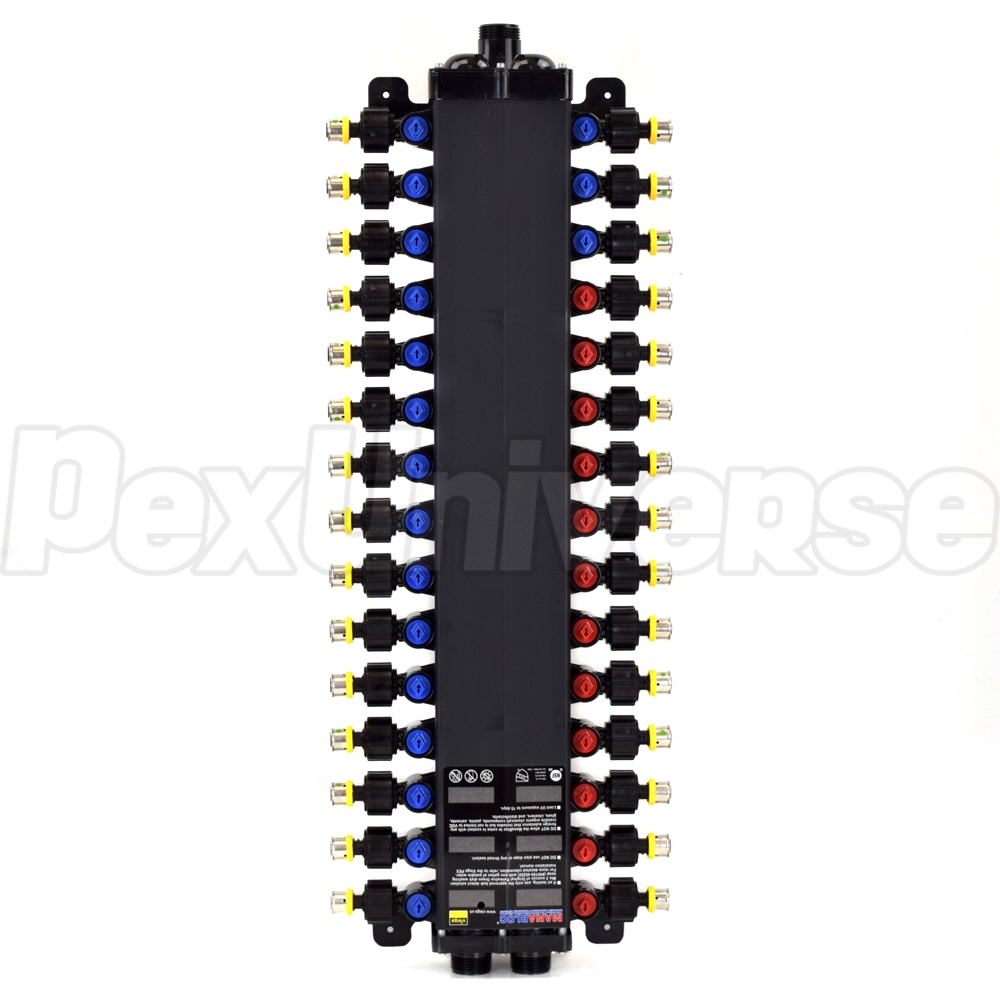30-Port, 1/2" PEX Press ManaBloc Manifold, (12) Hot, (18) Cold