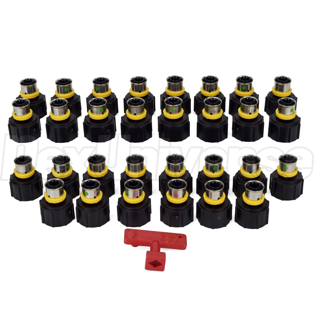 Viega ManaBloc manifold with (30) 1/2" PEX Press ports - (12) Hot and (18) Cold. Intended for use with ViegaPEX Ultra (Potable/Non-barrier) and Viega FostaPEX tubing and connection methods. Also compatible with all other types (A, B, C) and brands of PEX tubing. Each port (branch) is equipped with a built-in 1/4 turn shut-off valve for individual fixture control. Includes PEX adapters for all ports (branches) and Valve Key.