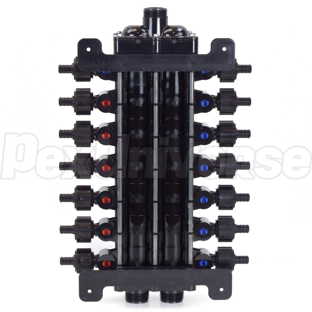 14-Port, 1/2" PEX Crimp ManaBloc Manifold, (6) Hot, (8) Cold