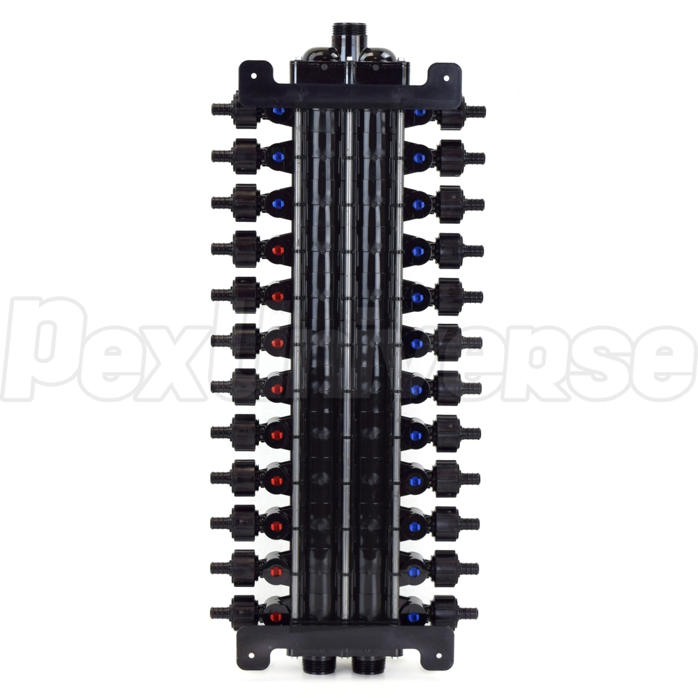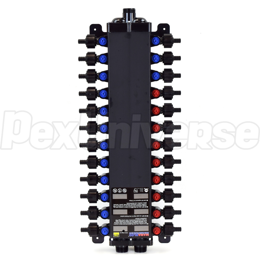 24-Port, 1/2" PEX Crimp ManaBloc Manifold, (9) Hot, (15) Cold