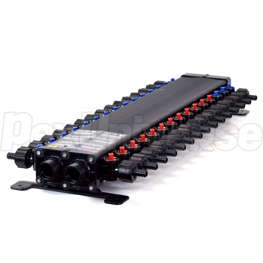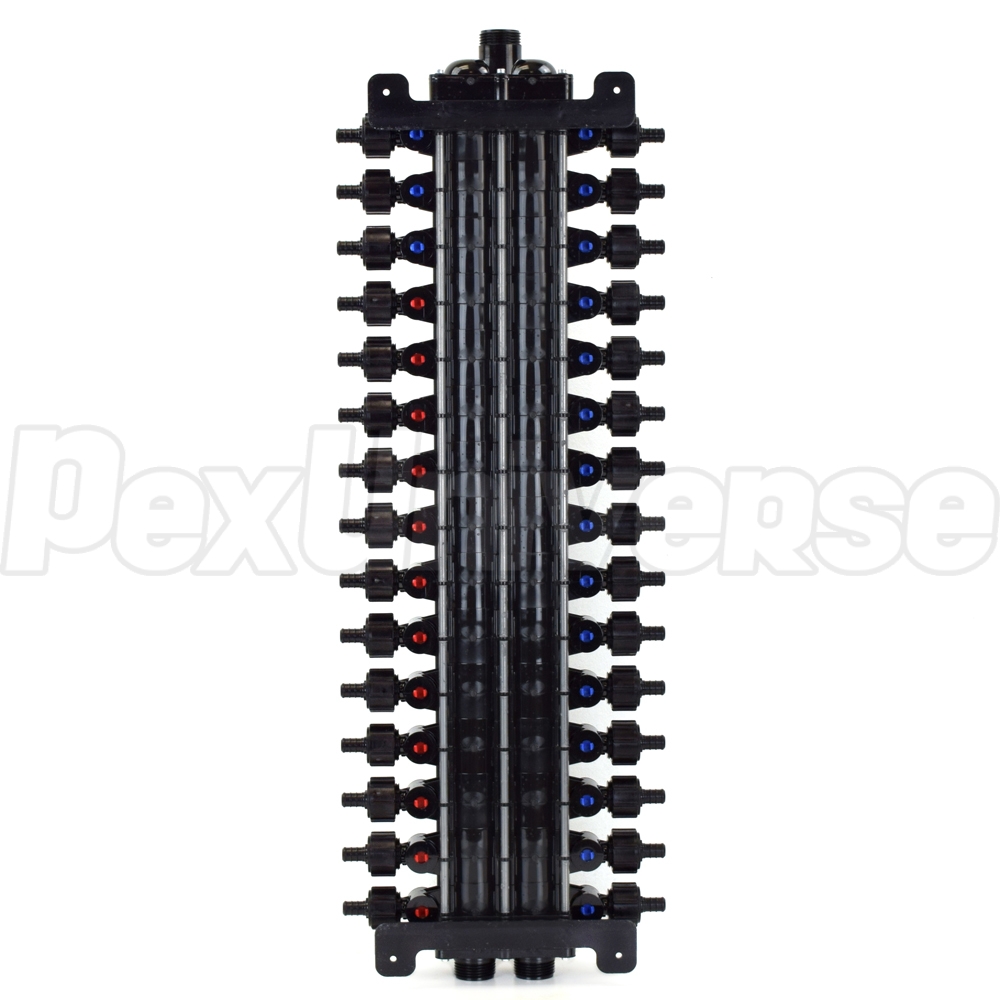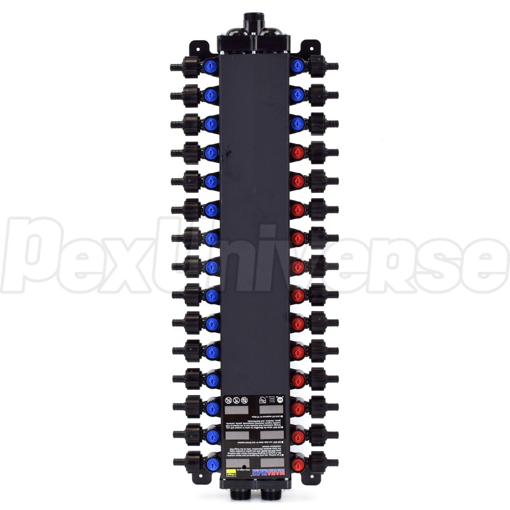 30-Port, 1/2" PEX Crimp ManaBloc Manifold, (12) Hot, (18) Cold