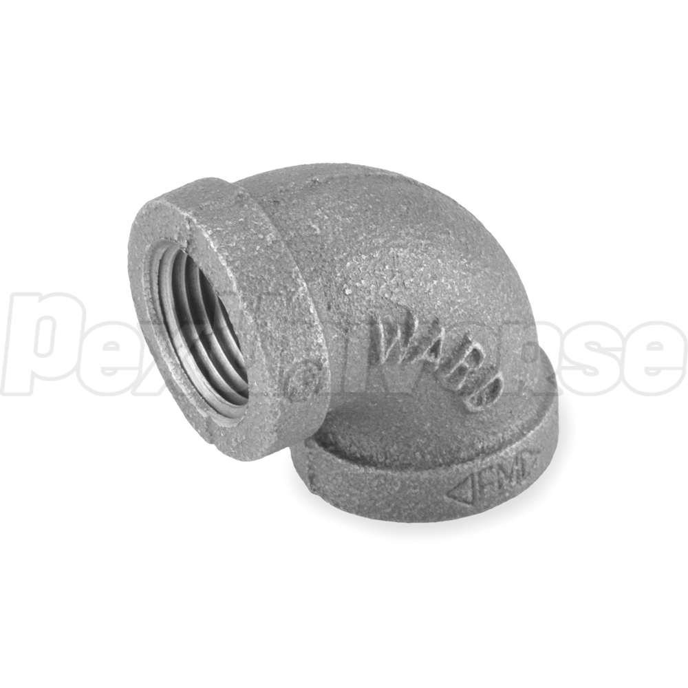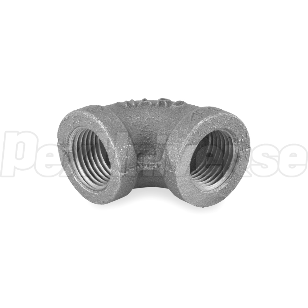 1/2" black malleable iron elbow connects two male threaded black pipes at a 90-degree angle.