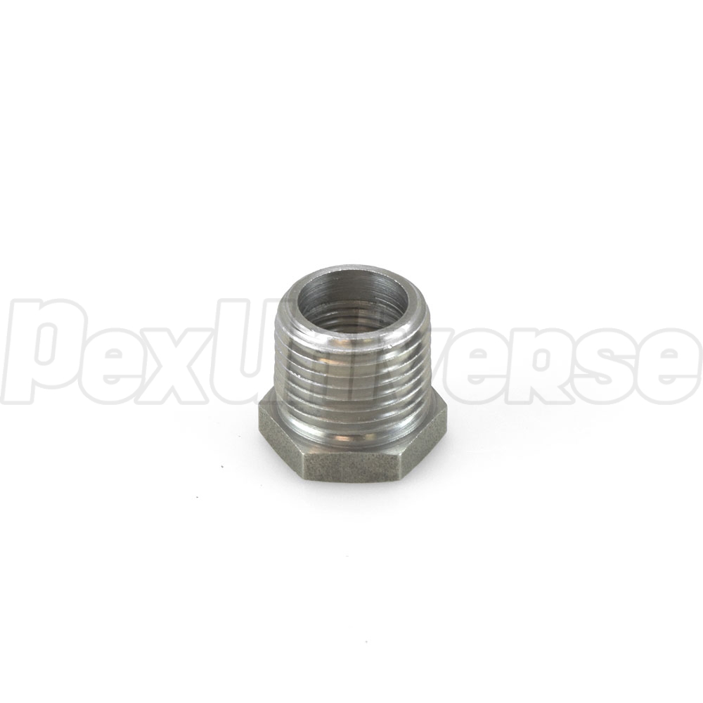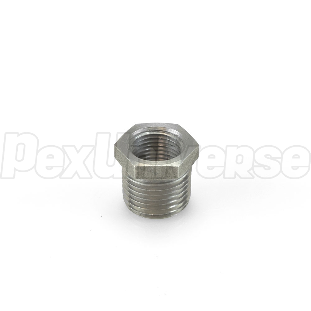 This black steel hexagon bushing connects 3/8" black pipe or nipple to 1/2" threaded black pipe fitting.