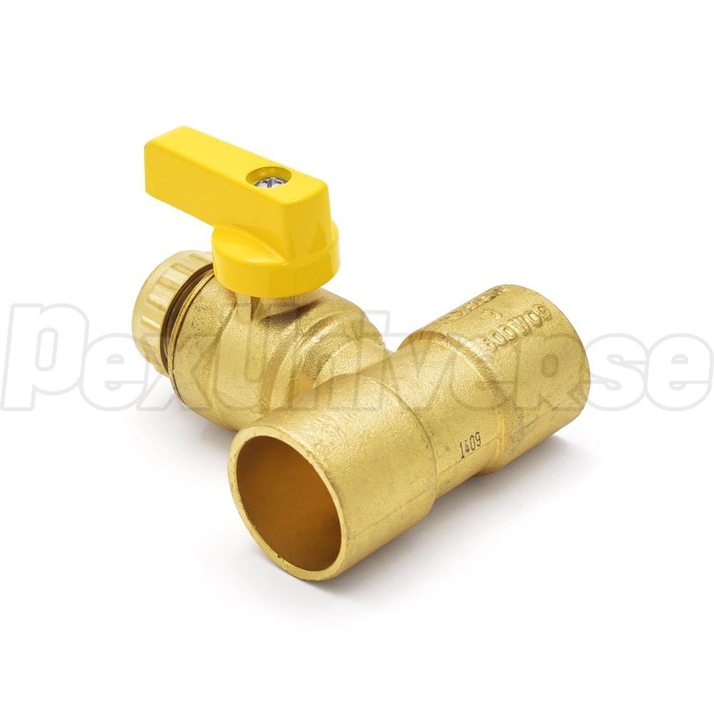 Webstone 50674 1" Sweat (CxC) T-Drain Pro-Pal valve eliminate assemblies needed for installing drain into a line. You can install it anywhere a drain or purge valve is required. Webstone 1" Sweat T-Drain valve is a hi-flow alternative for filling, draining, or venting closed-loop hydronic systems. An item contain garden hose connection to any water source in lines up to 2". Made of Lead-Free Brass. Guaranteed for Life.