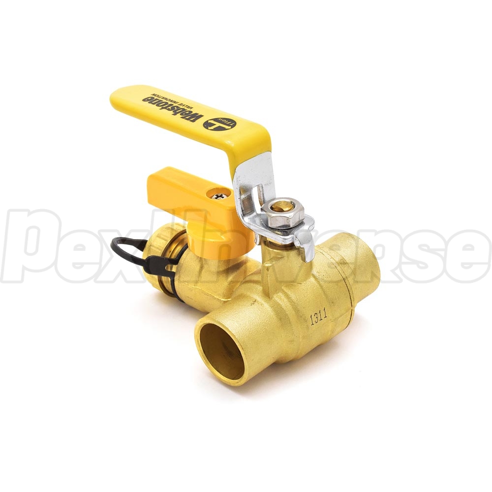 Line of patented Webstone Pro-Pal ball valves provides a 2-in-1 convenient plumbing solution. Every Pro-Pal valve features a high-flow drain valve on the side, with 3/4" regular garden hose connection. Hose drain cap included.