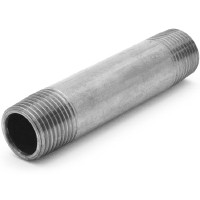 This stainless steel full (merchant) coupling connects two 1" NPT threaded pipes together in a straight line.