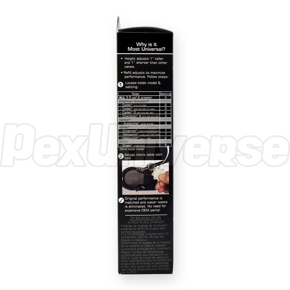 • Includes: (1) 528PRO Fill Valve, (1) Refill Tube, (1) Metal Refill Tube Clip, (1) Mounting Nut, (1) Cone Washer, (1) Coupling Nut, (1) Tamper Proof Key, (1) Refill Adjuster, and Instructions