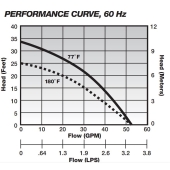 This manual sump pump model can reach a maximum flow of 47GPM and has shut-off head of 25' at 180F and 34' at 77F. The new Liberty HT450 has a powerful, oil-filled, thermally protected motor with permanently lubricated bearings and unitized shaft seal. The Vortex impeller is made of high temperature, engineered thermoplastic that permits passage of solids without clogging on this submersible sump pump. Aluminum construction with all stainless and brass fasteners and a stainless steel rotor shaft provides the Liberty HT 450 with ultimate performance and reliability. The manual HT450 High Temperature Sump Pump is operable by means of a pump control panel.