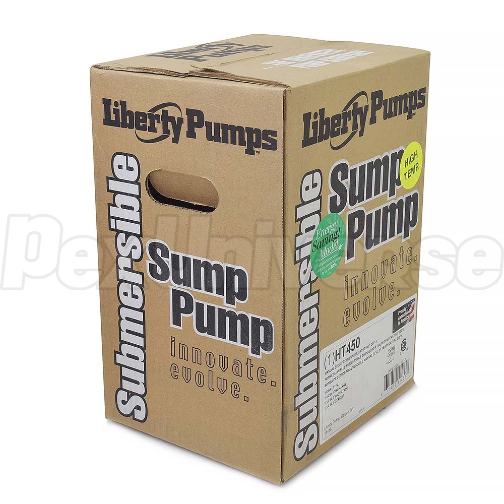 The Liberty Pump HT450 is 1/2HP, high temperature, manual submersible sump pump that can handle liquids up 180 degrees Fahrenheit. This manual sump pump is specifically designed for hot water applications such as boiler blow-down pits, condensate pits and high temperature water transfer. The Liberty Pump HT 450 manual submersible sump pump can handle solids up to 3/4" and have a discharge of 1-1/2" FNPT.