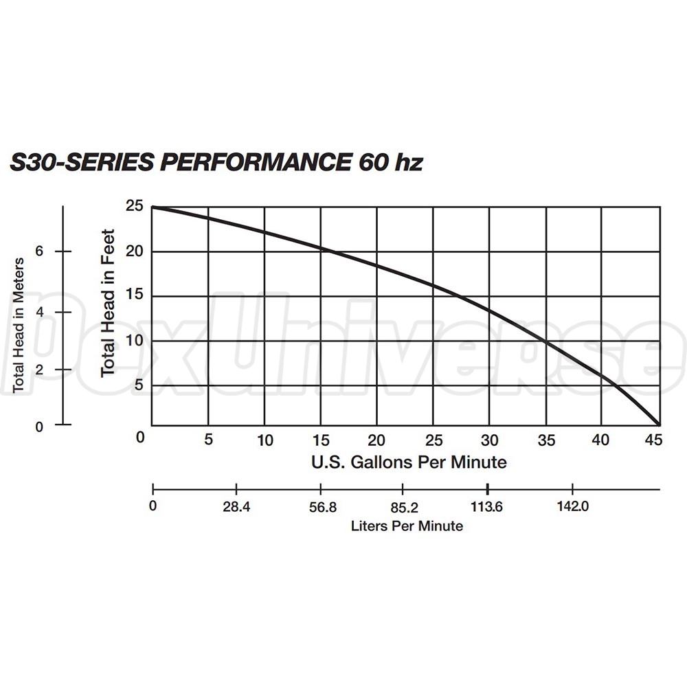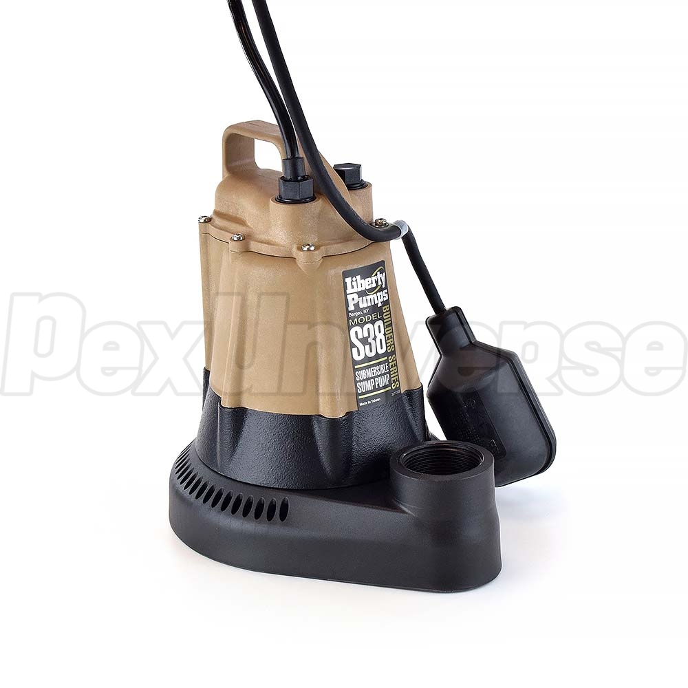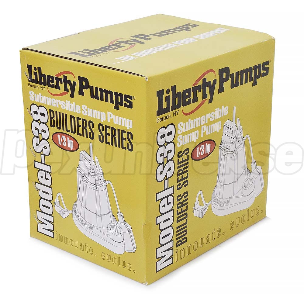 Liberty Pump S38 is 1/3HP Automatic Submersible Sump Pump with a piggiback wide-angle float switch and 10ft power cord. This Liberty Pump has 1-1/2" NPT discharge and 1/4" solids-handling with higher intake screening that helps reduce debris from entering the pump compared to bottom suction designs.