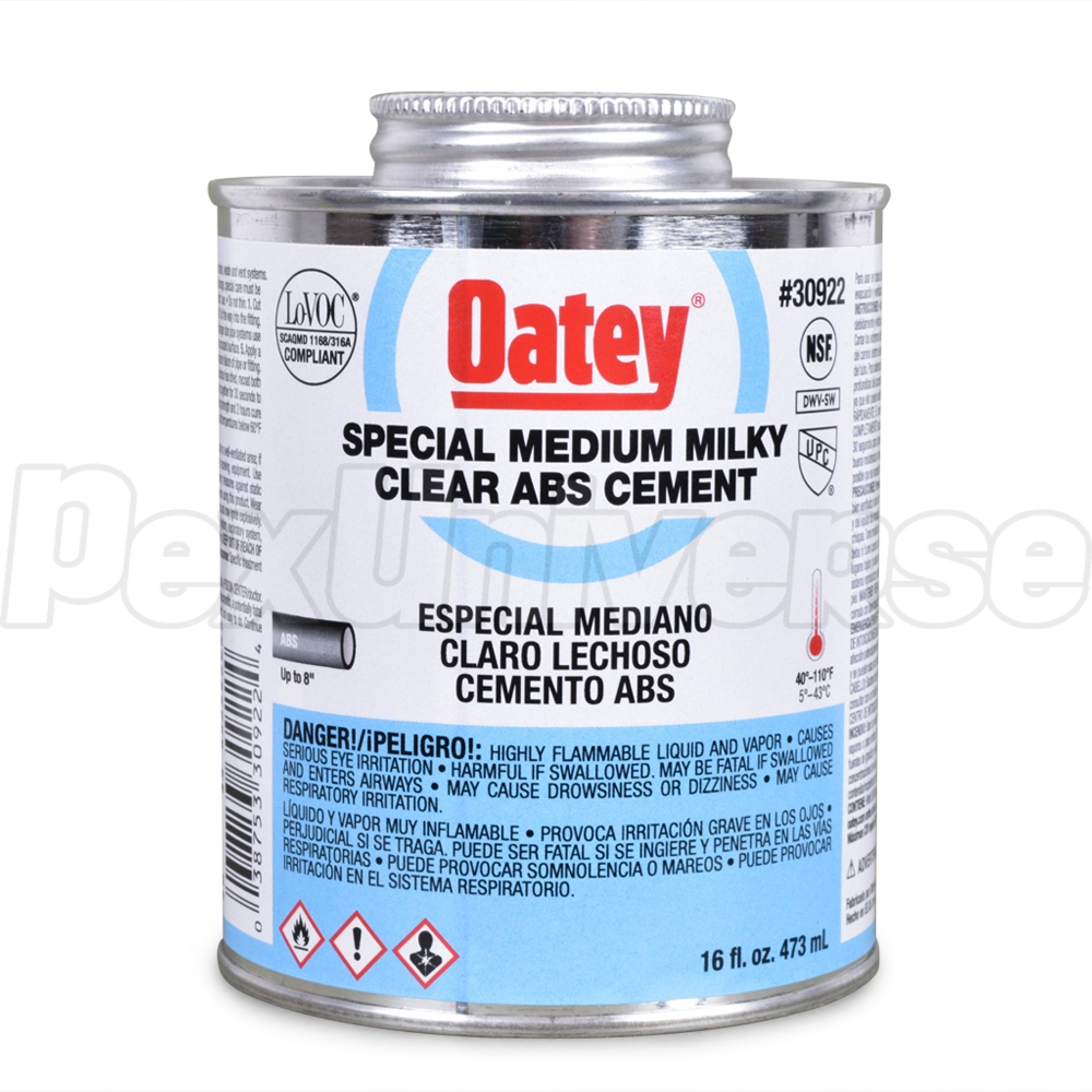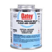 16 oz. can with dauber of medium-body, Oatey special milky-clear ABS cement, intended for all non-pressure applications. Clear color eliminates clean-up problems associated with black color cement use.