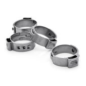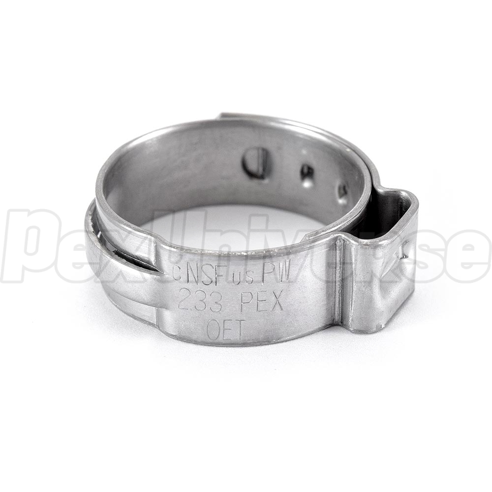 Partially clamped to prevent accidental slipping of the clamp along the pipe during installation. Oetiker brand 3/4" Stainless Steel Clamps are intended for use with a PEX Clamp (Cinch) Tool, 3/4" PEX tubing and 3/4" crimp style PEX fittings.