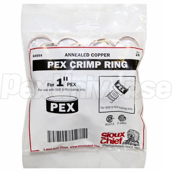 Sioux Chief 649X4 - 1" PEX Copper Crimp Rings. Used together with a PEX crimp tool and 1" crimp style PEX fittings. Manufactured to ASTM F1807 standard. Made in USA