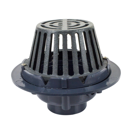 PVC Roof Drain w/ Enameled Cast Iron Dome Strainer, 3" PVC Hub