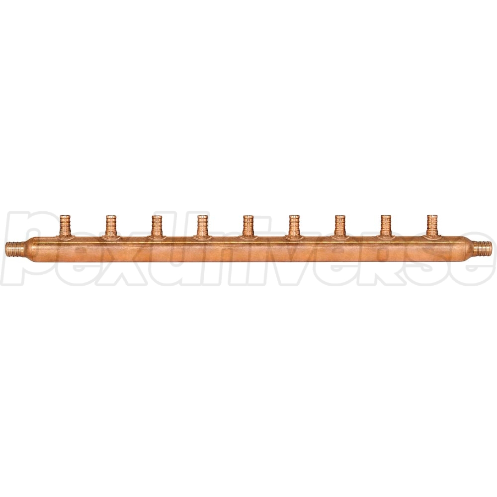9-port Copper Manifold with 1/2" PEX branches, 3/4" PEX x Open