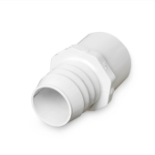1-1/4" Barbed Insert x 1-1/4" Spigot (1" Socket) Nesting PVC Adapter, Sch 40, White