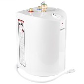 SHC series mini-tank hot water heaters are the easy solution for when small quantities of hot water are needed, yet running dedicated electrical lines is impractical or undesireable. These units simply plug into a standard grounded 120V outlet and are ready to produce hot water within minutes. Unlike with similar models from competitors, there's no compromise in quality here - the tank is glass-lined (with 6-year warranty), the dip tube is made out of stainless steel and plumbing connectors are brass. Fast recovery rates, stylish design (don't have to hide it in a cabinet) and lowest stand-by losses in the industry make SHC series water heaters anj easy choice. Made in Germany.